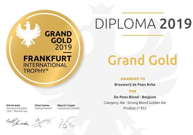 De Poes Blond(e) wint haar 2e gouden medaille in 2019! Het blonde bier behaalde de eerste plaats in de categorie - Strong Blonde Golden Ale.